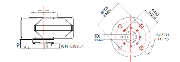 部分回轉(zhuǎn)防爆電動(dòng)執(zhí)行器安裝尺寸圖: